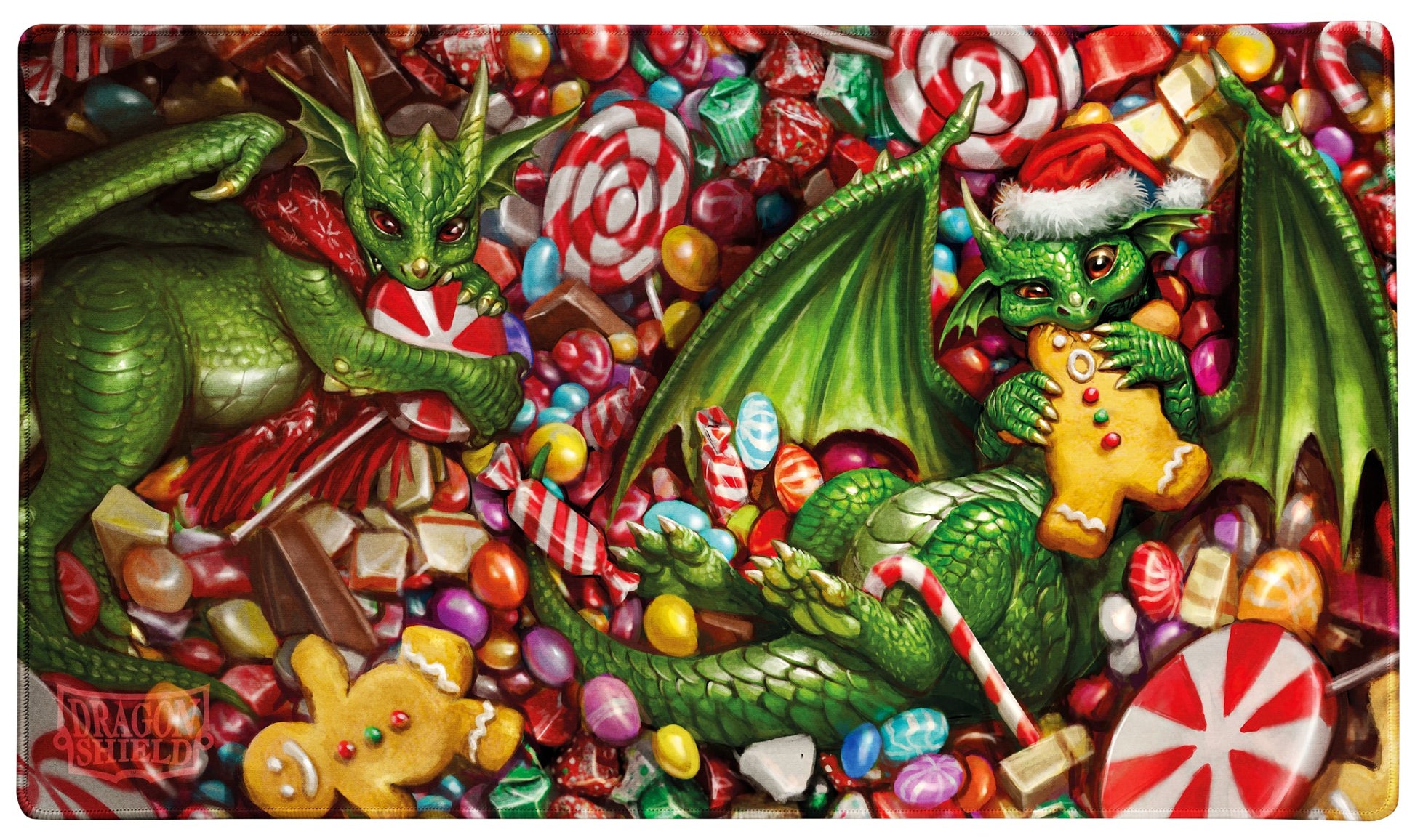 Embrace the season's cheer with the silky smooth playmat featuring the 2024 Dragon Shield Christmas dragons.