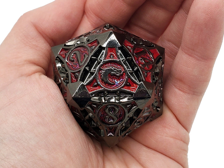 Old School 40mm D20 Metal Die: Gnome Forged - Black Nickel w/ Red