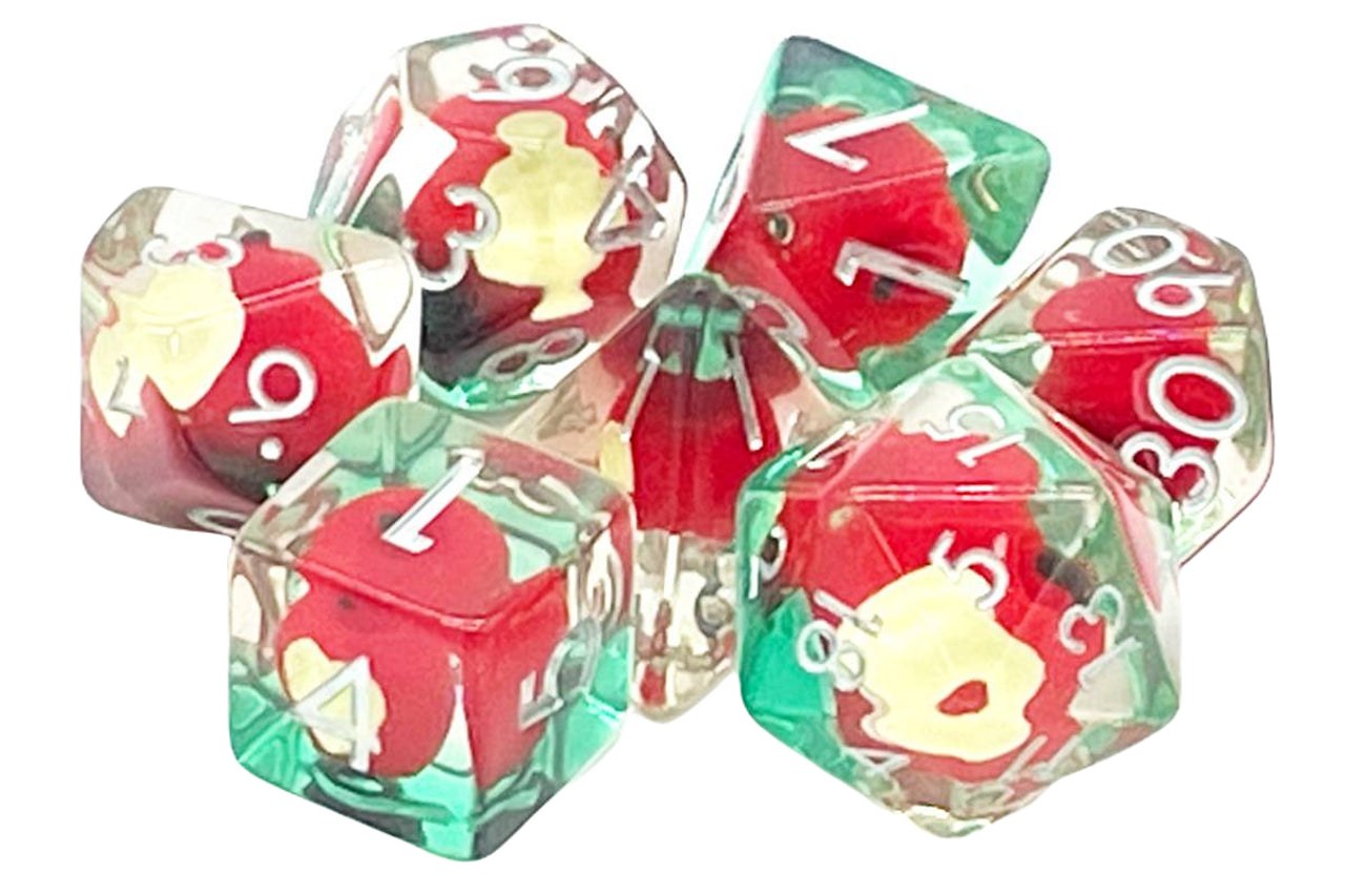 Old School 7 Piece DnD RPG Dice Set: Infused - An Apple a Day!